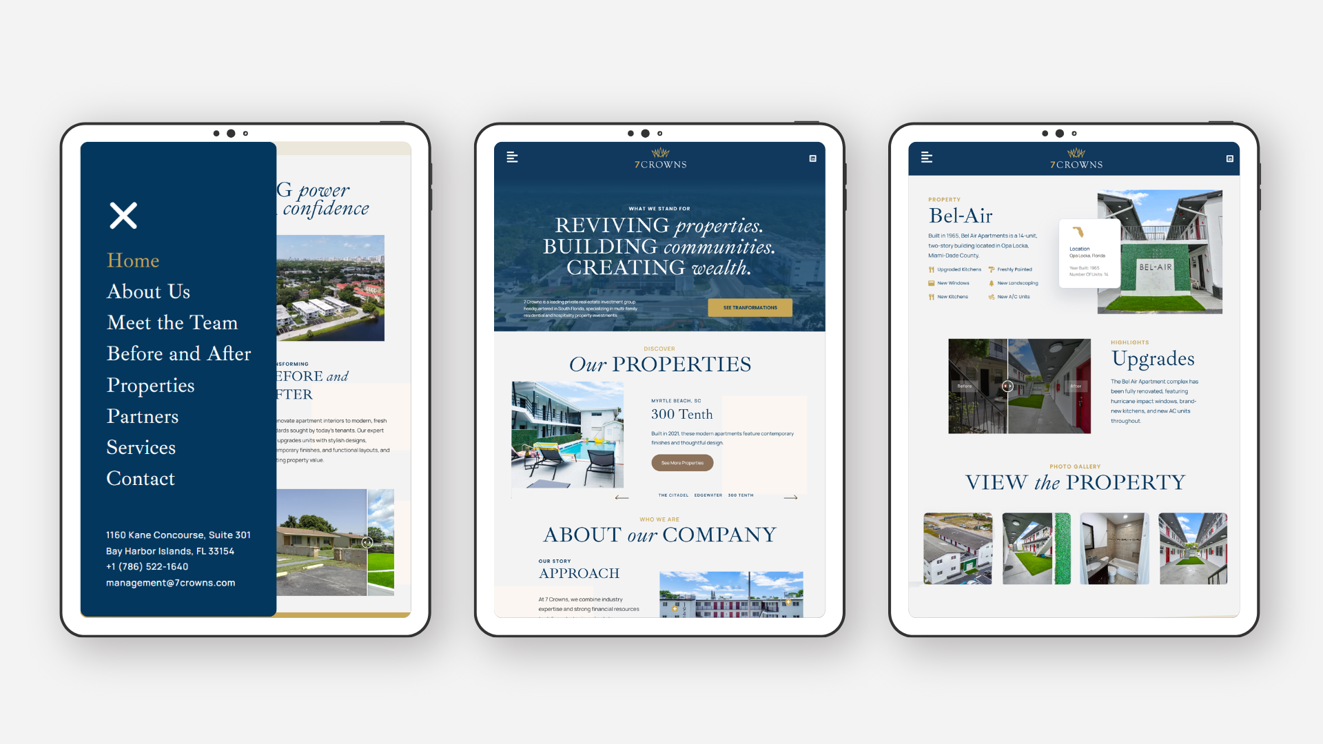 7 Crowns has recently undergone an exciting rebranding of its logo and website, unveiling a fresh, modern, and elegant design that truly reflects the sophistication of their brand. The new website is highly interactive, allowing visitors to seamlessly explore their extensive portfolio of renovations. One of the standout features is the dynamic before-and-after galleries.